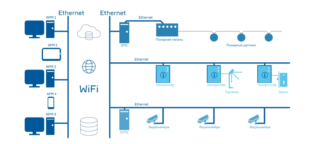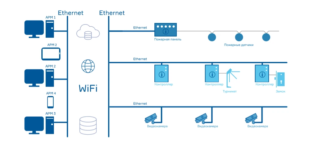 Такой подход максимально отвечает современному тренду восприятия СКУД как сервиса. Заказчик не думает об установке и обслуживании системы, все это удаленно осуществляют специалисты.