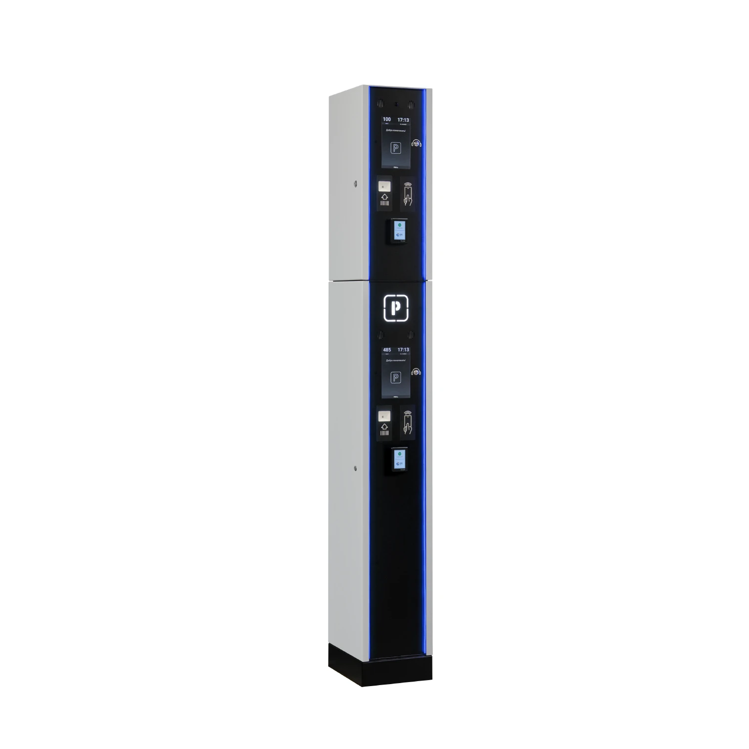 Двухуровневая стойка позволяет водителям легковых и грузовых автомобилей предъявлять идентификатор, получать парковочный талон или оплачивать парковку, не покидая кабину.