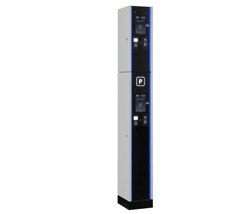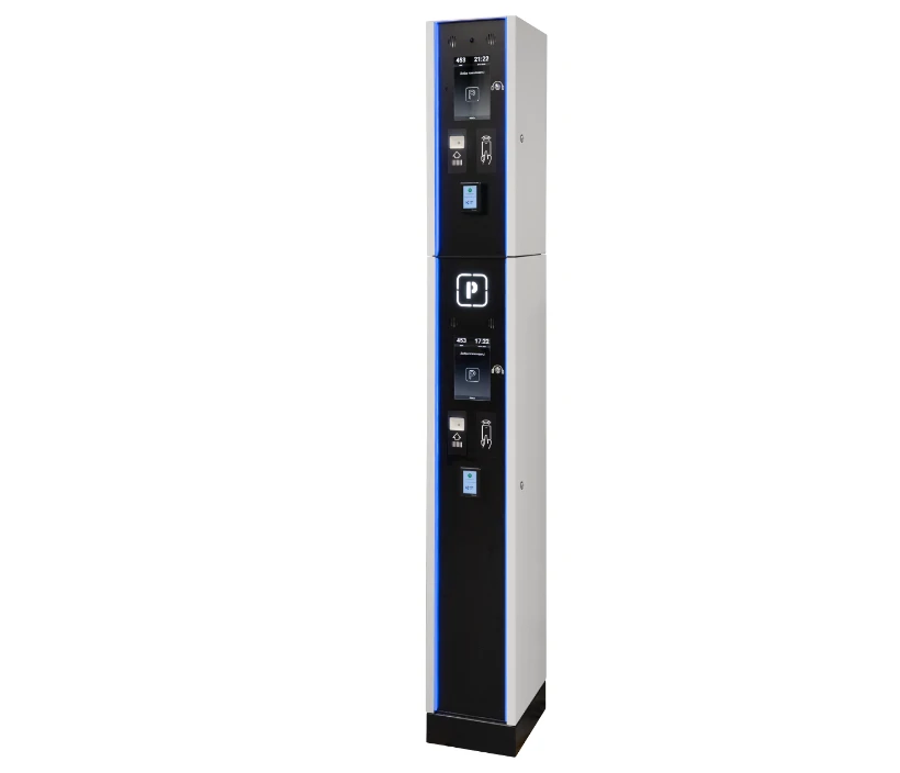 Двухуровневая стойка, состоящая из стоек PP-02P и PPD-02P, дополнительно оснащена терминалами безналичной оплаты.