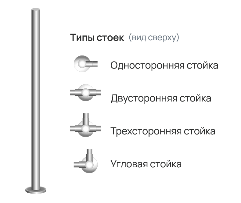 Комбинируя разные типы стоек, можно сформировать ограждение необходимой конфигурации.